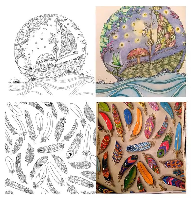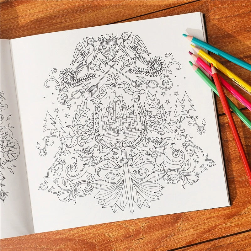 Coloring fans of all ages will enjoy immersing themselves in a selection of the most popular artworks from the original book featuring owls, unicorns, hot air balloons, birdhouses, floral skulls, a magic castle, and more. The stunning illustrations make for beautiful and affordable wall décor whether they are customized in color or left as simple, black and white line drawings.